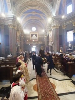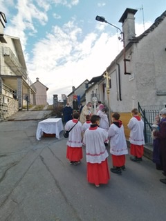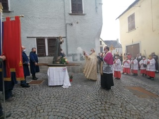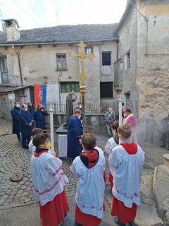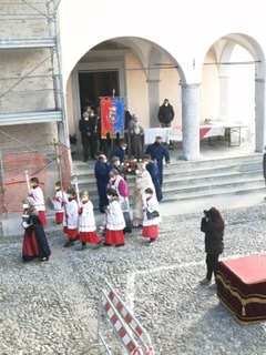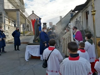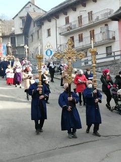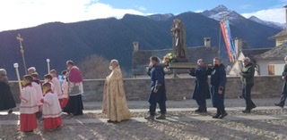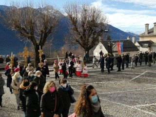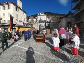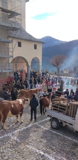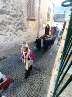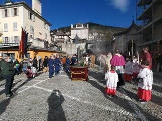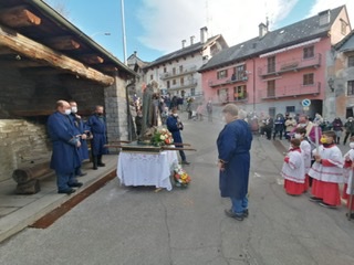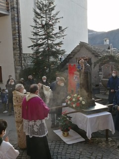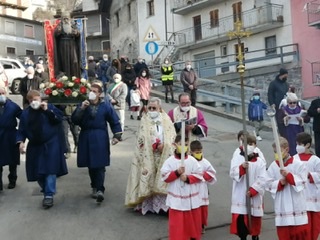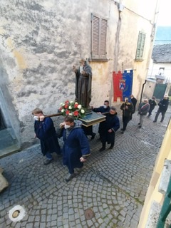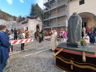 TOCENO- 17-01-2022-- Toceno in festa questa mattina per la tradizionale festa patronale di Sant' Antonio Abate, che ha richiamato non solo i fedeli ma anche gli animali dei quali il Santo è protettore. La cerimonia seguita dalla processione per le vie del borgo è stata officiata da Mons.Fausto Cossalter vicario generale della Diocesi di Novara e dal parroco, don Paolo Montagnini. È stata anche l'occasione per inaugurare il nuovo campanile medievale della chiesa di Toceno: tra circa dieci giorni infatti verrà rimossa anche l'impalcatura.