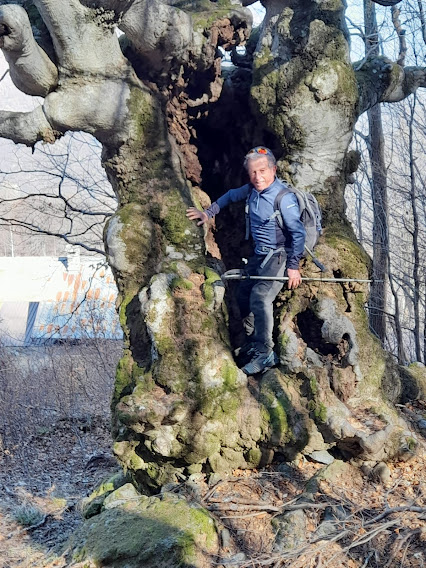 Abbandoniamo il sentiero D07 per Pontasca e Bei e teniamo la destra iniziando la severa salita che la guida odierna ci aveva preannunciato, lungo un bel sentiero non indicato sulla cartina CAI più recente. La presenza di un grande conoscitore del territorio oggi si rivela indispensabile. Siamo in un bellissimo bosco di faggi, molto ripido. Passiamo dall’Alpe Carbone, 940, e dai ruderi dell’Alpe Selva Grande, 1215. Più in alto l’Alpe Retti, Ret per gli amici, 1456, e il Colle del Pianino, 1620.
