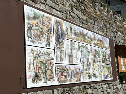 L'istallazione è composta da 11 pennelli che raccontano la storia e gli aspetti più caratteristici della val Bognanco, dalle acque minerali ai lavori d'alpeggio, dalle bellezze naturalistiche alle personalità culturali. L'opera è visibile anche a chi è di passaggio perché si trova all'altezza della chiesa di San Lorenzo, sulla sinistra della strada provinciale.