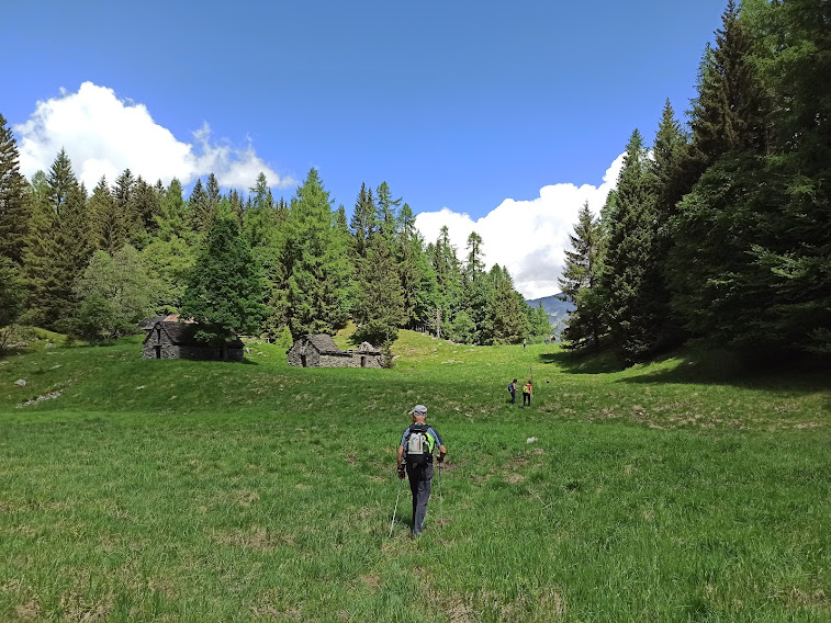 Anche qui i cinghiali arano i prati, ma molto meno che nell’alta Val Bognanco. Passando da un piccolo alpeggio (Patella), raggiungiamo Selvanera di Dentro, 1158, altro piccolo paradiso fra questi monti. E’ il luogo prescelto per una lunga pausa e un giusto ristoro. Qualche ora più tardi dalle baite ci dirigiamo ad ovest e prendiamo l'evidente sentiero che, dopo un tratto pianeggiante sui consueti baratri, scende nel bosco ripido a tornanti e ci conduce alle auto in quel dell’Alpe Salviggia (un’ora da Wolf). A Varzo, in un parco meraviglioso, dimentichiamo le fatiche della giornata.