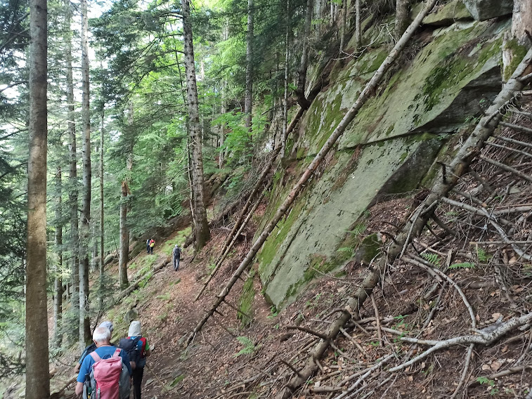 Siamo in dieci ed oggi ci schieriamo con il sei – due – due: sei anziani, doppio medico e doppia badante. Splende il sole fra qualche nuvola innocua e gli ombrelli restano negli zaini. Camminando per tutto il giorno nei boschi di un versante nord non patiremo neppure il caldo.