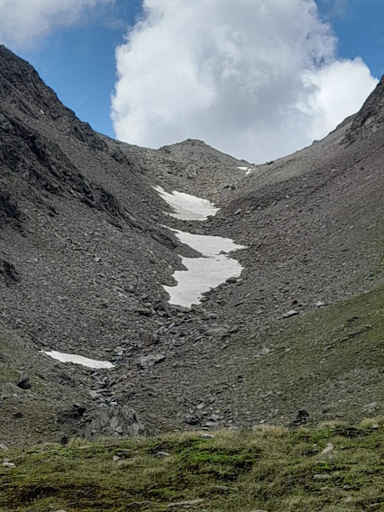 La presenza della nostra prestigiosa guida walser ci fa optare per l'alta Val Formazza. Le previsioni sono buone, ma oggi la nostra fiducia sarà tradita. Siamo in sei e la formazione odierna prevede anche il medico di turno e la badante titolare. Parcheggiamo al Rifugio Bim Se, sotto la diga di Morasco, 1800. Per ora splende il sole. Sul sentiero G95 della GTA arriviamo all'Alpe Nefelgiù, 2048, nella parte iniziale e pianeggiante del maestoso vallone che s'inerpica verso sud (poco meno di un'ora). Più avanti abbandoniamo l’evidente sentiero che sale al Passo di Nefelgiù e seguiamo la guida su tracce che lui ben conosce, tenendo la sinistra.