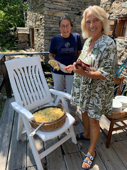 L’atmosfera incantata che si crea, ben nota a chi conosce il legame inscindibile fra montagna e amicizia, fa volare il tempo, che qualcuno utilizza anche per una pennichella a tavola. Al decano del gruppo agonistico viene donata la posata di servizio della “pasta rustìia” in modo che possa ultimare a casa, con calma, il recupero dello splendido condimento rimasto attaccato. Dopo aver sancito la nostra amicizia e la riconoscenza per la bellissima giornata con una dedica sul “diario d’alpe”, con dispiacere torniamo verso valle.