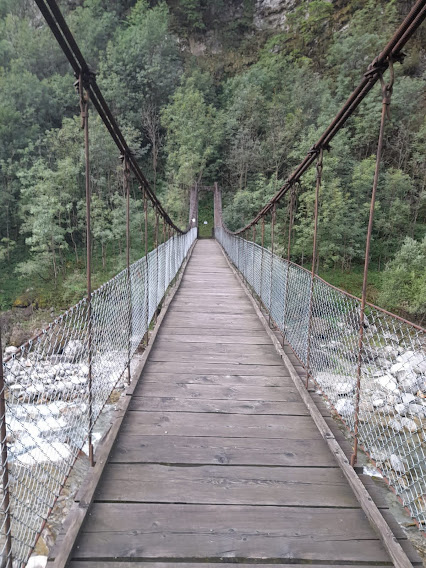 Parcheggiamo all’altezza dei campi sportivi, in frazione Riva, sotto i bruttissimi viadotti in acciaio Corten della nuova VS33, a quota 475. Bottiglie e pacchi vari saliranno sulla Jeep del nostro ospite. Attraversiamo il torrente Diveria ed imbocchiamo il sentiero F01 che ha come meta finale il Passo dell’Acqua Fredda e il bivacco di Pian Pumper.