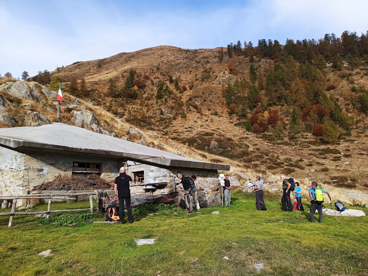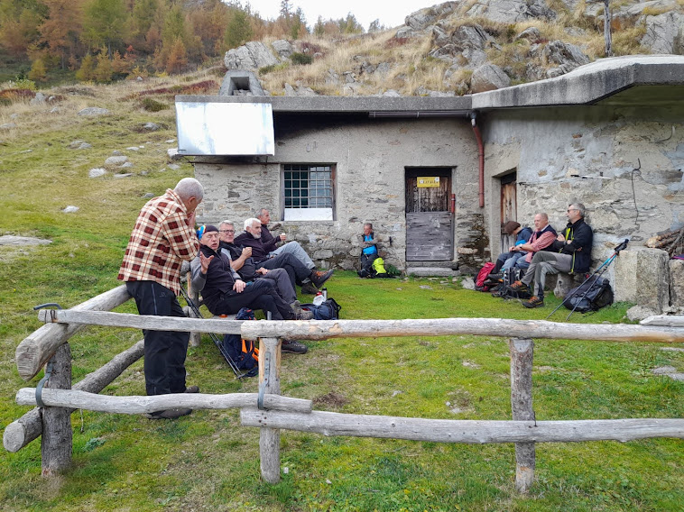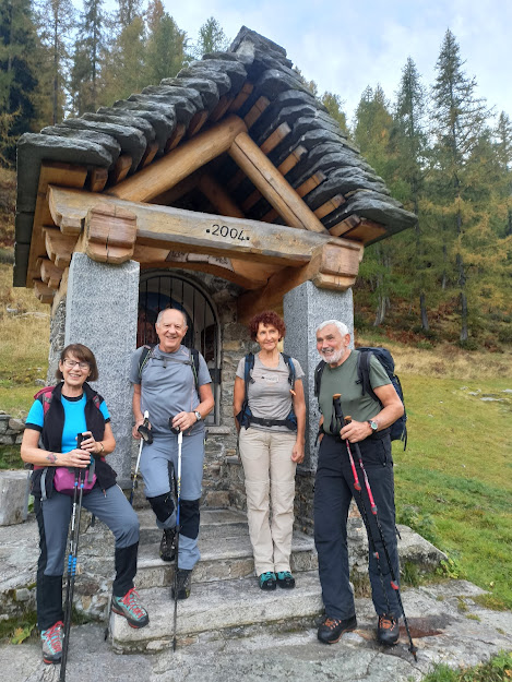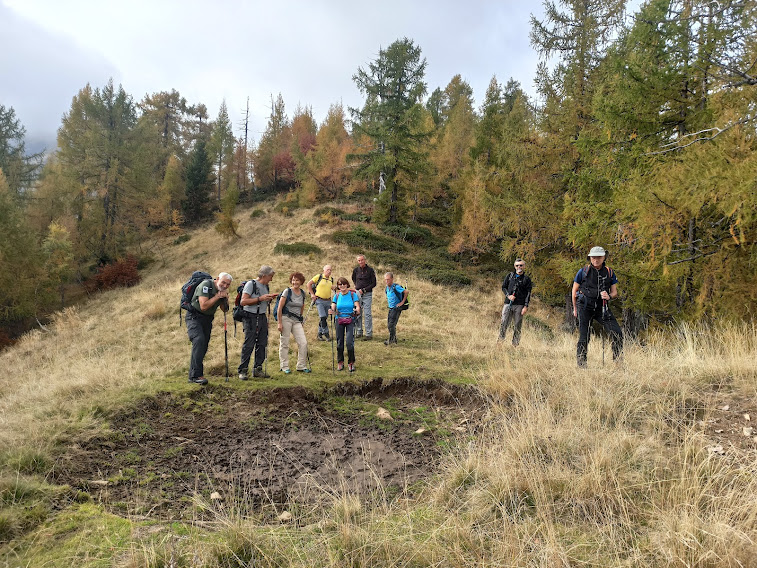 Saliamo da Malesco in Val Loana e parcheggiamo a Le Cascine, 1253. Nuvole e sprazzi di sole, ma ci fidiamo di Meteosuisse e gli ombrelli restano a valle. Dietro le baite, in direzione sud ovest, parte il bel sentiero M 12 che, con un tratto finale impegnativo, porta in vetta al Pizzo Stagno, già conquistato dai Trotapian nel lontano 2014. Nei bellissimi boschi intorno a noi cominciano a dare spettacolo i colori dell’autunno. Dà anche spettacolo, ma abbastanza osceno, una vasca da bagno sulla sinistra del sentiero.