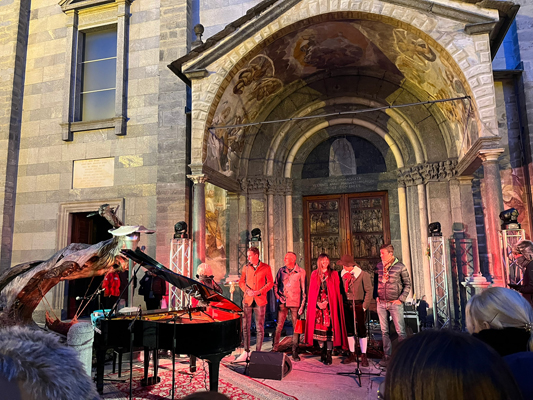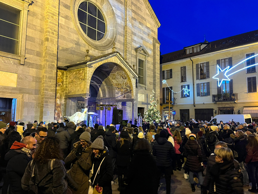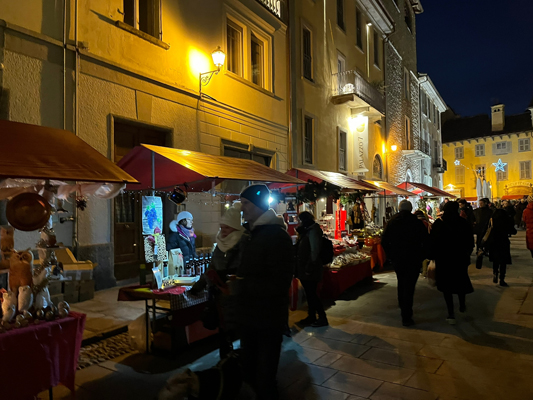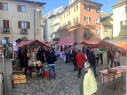 DOMODOSSOLA- 18-12-2022-- Con un omaggio in musica di Alberto Fortis, e con il saluto delle maschere del Carnevale domese, il Togn e la Cia, si è conclusa positivamente sabato la prima delle due giornate dei Mercatini di Natale di Domodossola.