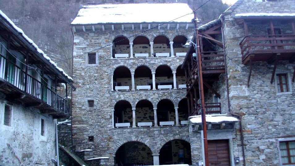 Privi di motoseghe e di machete, creiamo un passaggio precario in questa giungla fuori stagione e passiamo con un po’ di contorsioni. A creare un certo stato confusionale contribuiscono i cartelli segnaletici con tempi di percorrenza spesso contrastanti. Eppure non abbiamo ancora assaggiato la celebre grappa della nostra guida! Da Seppiana a Viganella si sta sulla strada, per via della neve e degli ostacoli sul sentiero. Casa Vanni è un gioiello, da vedere. Il centro di Viganella, con la sua piazzetta dove lo specchio riflette il sole anche nei mesi d’ombra, è ordinato, pulito, accogliente.