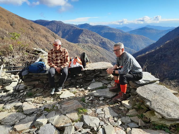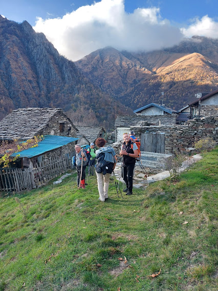 I centocinquanta metri di dislivello non previsti sono una bella “botta” per degli anziani che hanno nelle gambe già cinque ore di cammino. Ora capiamo che i tempi dei cartelli indicatori erano giusti. Sul sentiero del mattino raggiungiamo Intragna dopo due ore da Piaggia. Al Circolo di Cambiasca chiudiamo la faticosa giornata.