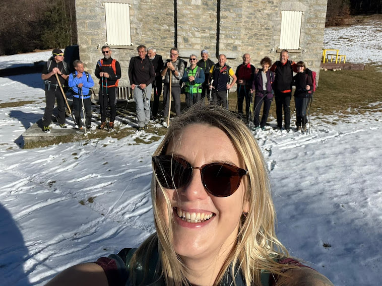 Bella giornata, con temperatura vicino allo zero all’alba, ma riscaldata più tardi da tanto sole, troppo per la perdurante siccità. Alta partecipazione, forse legata anche alla promessa di poco dislivello e tanto piano.