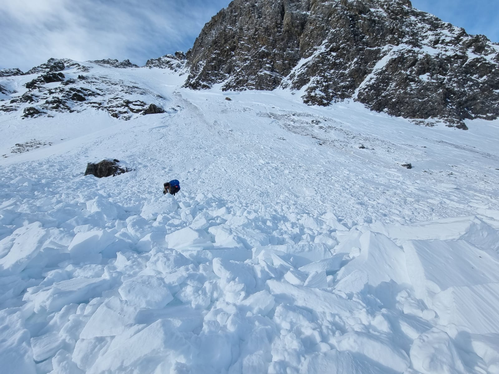 FORMAZZA- 22-01-2023-- Grazie al Soccorso Alpino possiamo mostrarvi, attraverso le foto scattate sul posto direttamente dai tre scialpinisti stranieri, il luogo dove è caduta una piccola valanga nella tarda mattinata di stamane ai Corni del Nefelgiù, a quasi 2.900 metri, presso la diga di Morasco, in alta Formazza.