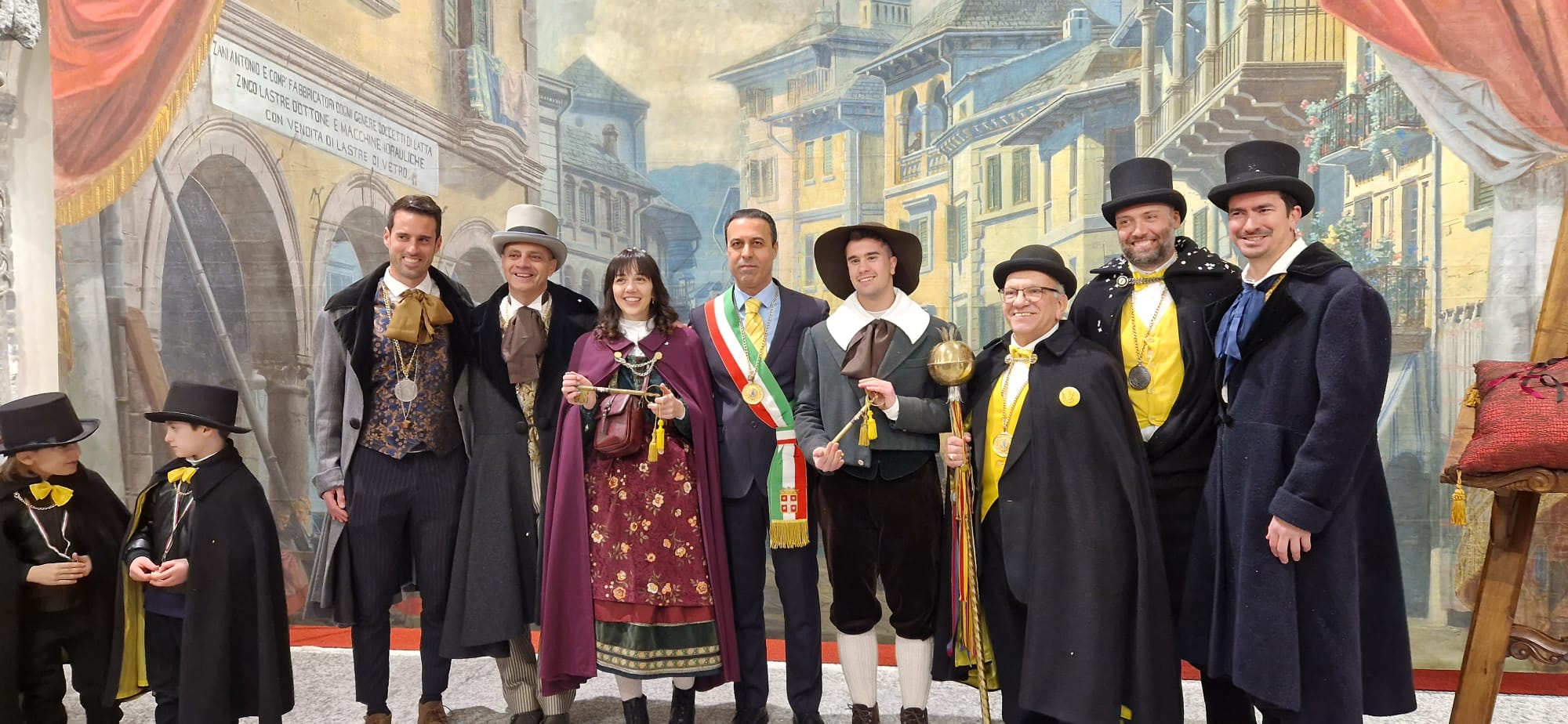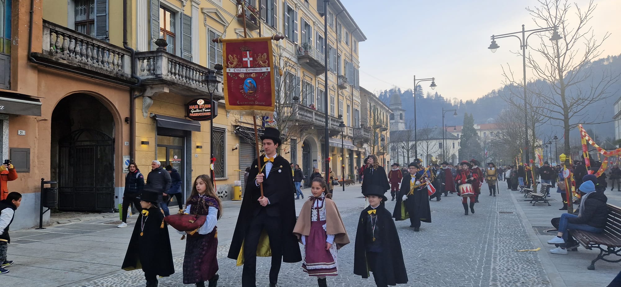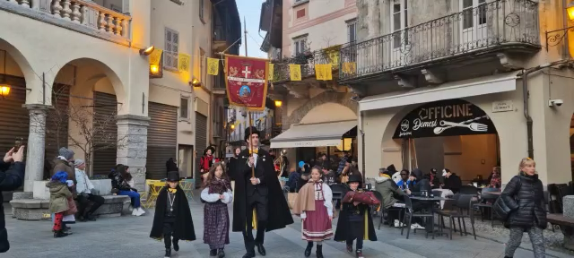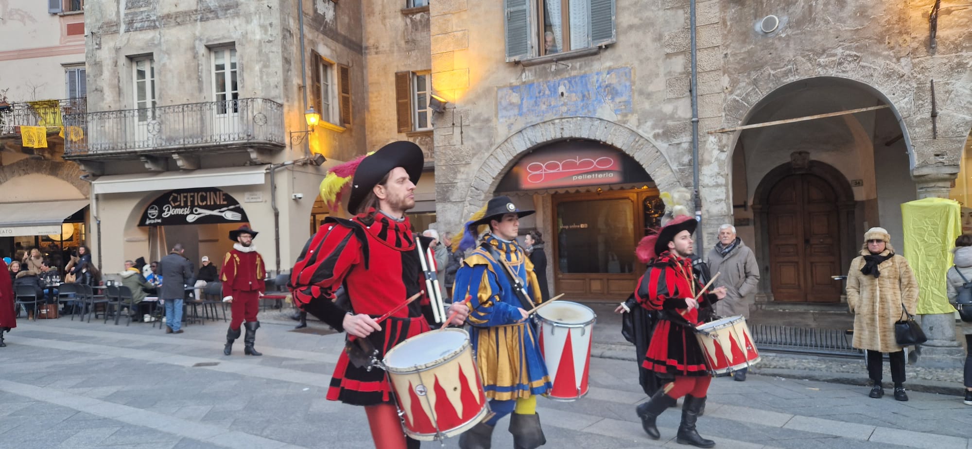DOMODOSSOLA- 11-02-2023-- Al via il Carnevale di Domodossola: oggi lungo le vie del centro, la corte di Mattarella ha accompagnato il Togn e la Cia, a suon di tamburi, sino a Palazzo San Francesco dove si è tenuta la tradizionale consegna delle chiavi della Città.