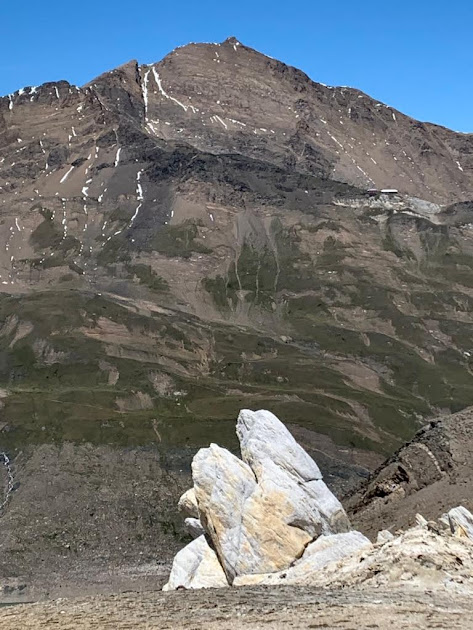 Dopo un’ora e un quarto di cammino il sentiero diventa pianeggiante, ritorna il vento che rinfresca e si apre verso sud ovest il maestoso vallone ai piedi dell’Arbola e dell’Hohsandhorn. Sono al baitello, Zum Stock, quota 2210. Poco più avanti c’è il bivio per il Rifugio Città di Busto e per Morasco lungo il sentiero più frequentato, a destra. Io tengo la sinistra e attraverso il Rio del Sabbione. Sono sul sentiero G39, evidente e contrassegnato da una grande quantità di ometti artigianali, hobby salutare per qualcuno. Si sale. Tanta gente torna già a valle. Non sono proprio abituato a questi orari.
