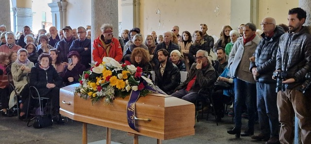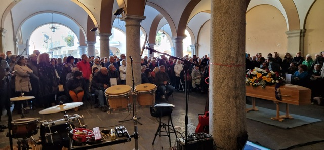 DOMODOSSOLA- 05-11-2023-- Domodossola ha salutato domenica pomeriggio il chitarrista Vic Vergeat. Sotto i portici di teatro Galletti si è tenuta la cerimonia laica, a cui hanno partecipato anche musicisti ossolani con i quali ha collaborato nel corso della sua lunga carriera artistica. Sono migliaia i messaggi di condoglianze giunti alla moglie Carmen Corradini, noto medico domese.