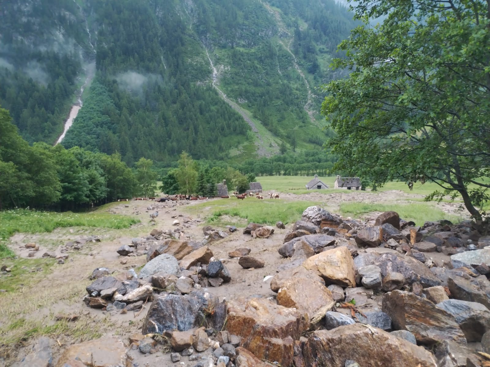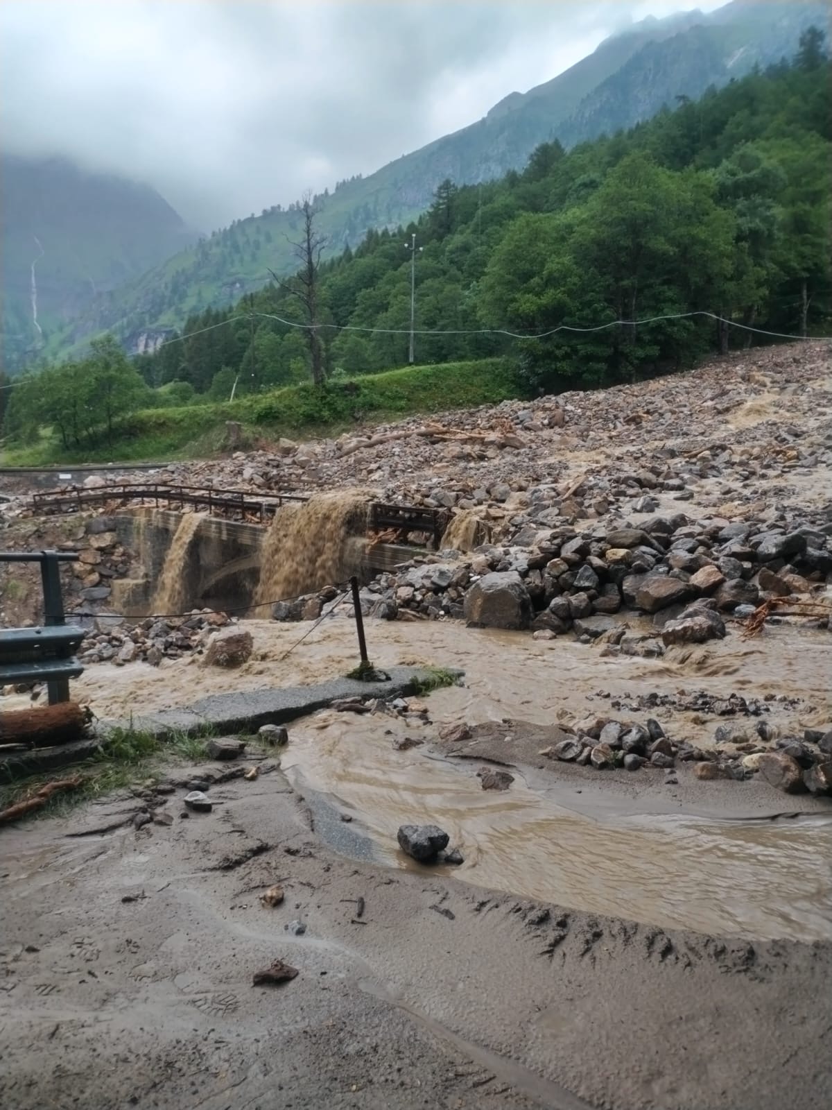 SAN DOMENICO -29-06-2024-- Il forte nubifragio che ha colpito la val Divedro intorno alle ore 17 ha fatto disastri specialmente a San Domenico, verso Ponte Campo, sulla strada che va al Veglia.