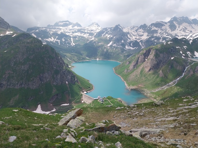 Un’altra bella giornata, caldissima a fondovalle, con qualche nuvola e la solita previsione inutilmente allarmistica che evoca temporali nel pomeriggio. Dopo una superba colazione a casa della badante con minore anzianità nel gruppo, che acquisisce punti preziosi nella sua scalata all’incarico ufficiale, proseguiamo fino ai piedi della maestosa diga del Lago di Morasco, al Rifugio Bim Se, 1800.
