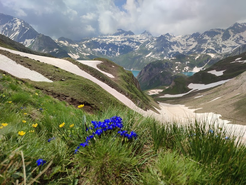 Seguiamo un tratto del tracciato in piano sul quale si trovano ancora alcune delle rotaie, a quota 1940, fino a ritrovare sulla destra il sentiero G35, qui meno evidente, che scende alla Cascata del Toce, 1675 (due ore). Incontriamo tante mucche al pascolo e questo ci apre il cuore. Prima di riaccompagnarci a ritirare le auto, un amico ci ospita a casa sua per un ricco aperitivo. Cosa si può desiderare di più dopo una splendida giornata nei paradisi dell’alta Val Formazza?