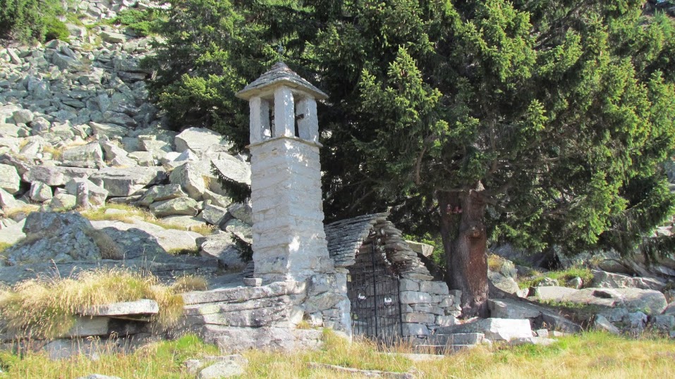Colazione e faticosa scorta d'acqua: dalla fontana ne sgorga solo un filo e per tre ore non ne troveremo più. Osserviamo la cappella, inaugurata nel 1931, con il simpatico mini campanile. Si riparte tenendosi sul versante della Val Divedro (sud) e, su sentiero scomodo e faticoso, si raggiunge, dopo un'ora, il filo della cresta, a quota 2100 circa. La ripida traccia, segnata, si mantiene in prevalenza a sinistra della dorsale.