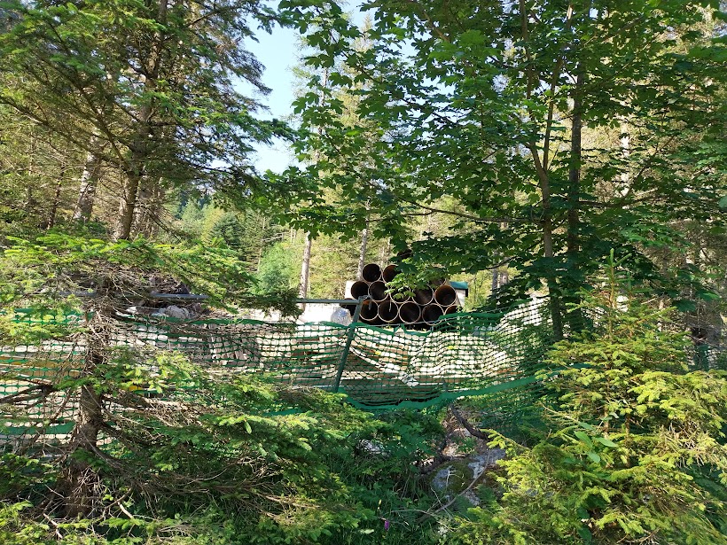 Lo si intuisce dal diametro dei tubi che stanno scaricando. Il tratto di valle fra Crocette e il rio che scende dai contrafforti orientali del Pizzo Bianco, cento metri più in alto, è già irrimediabilmente deturpato, proprio in prossimità delle splendide “caldaie”. Dal Pizzo è scesa la solita immane valanga di cui sfioriamo gli abbondanti residui.