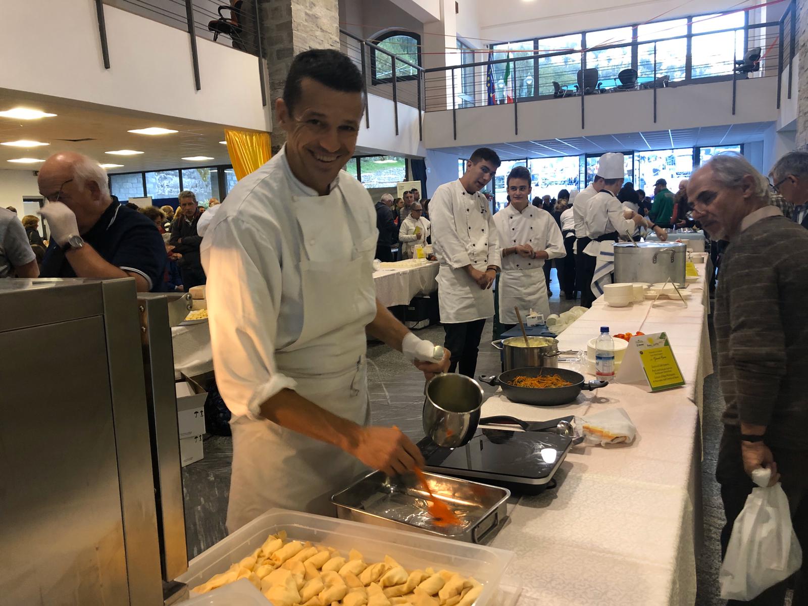 CRODO- 13-10-2019- Un tributo all'Alta Ossola ed ai suoi fantastici formaggi e prodotti questo weekend a Crodo con Bianco Latte. Stamane al Foro Boario la mostra-mercato, con un tripudio di formaggi freschi, stagionati, tome pregiate e gustosi prodotti caseari, erbe officinali, prodotti dell'orto, frutti e mieli per un viaggio lento a km 0 tra i sapori e profumi dell'alta Ossola. Gettonatissima anche “Oro&Vino”, la degustazione guidata dell'oro d'Alta Ossola: una degustazione di formaggi e tome locali e i nserata la "merenda sinoira d'alta Ossola”, il percorso degustazione in dieci tappe in cui i formaggi e prodotti presenti nella mostra-mercato sono diventati i protagonisti delle preparazioni gourmet degli chef di Cooking for Alp, in dieci deliziosi piatti".