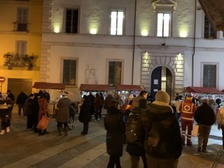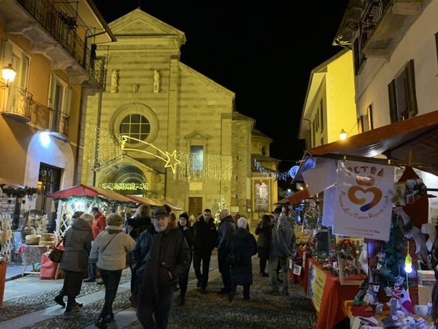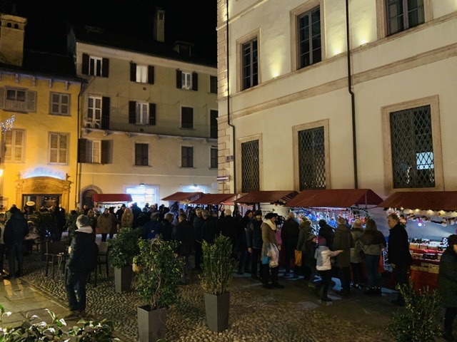 di Natale di Domodossola, giunti alal 22^ edizione. sabato mattina sono stati tanti gli svizzeri che hanno apprezzato le merci esposte sulle 150 bancarelle dal tetto rosso, di cui 30 al "debutto" nel mercatino del capologo ossolano. Per tutta domenica, sino alle ore 19, saranno presenti le bancarelle, i punti di ristoro e l'animazione con le cornamuse. In collegiata in serata il concerto degli ottoni del teatro di Milano alle ore 21.