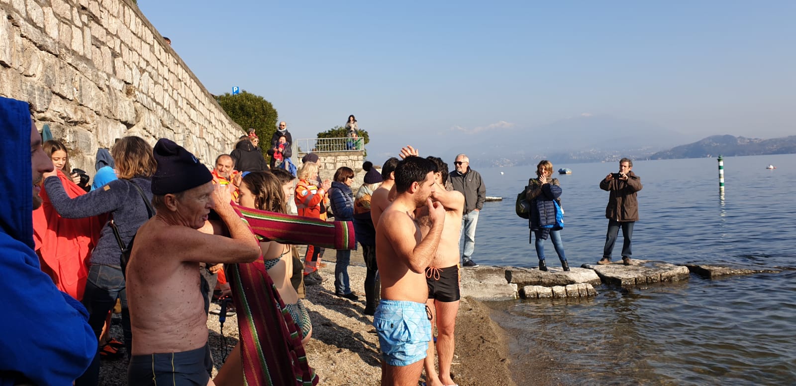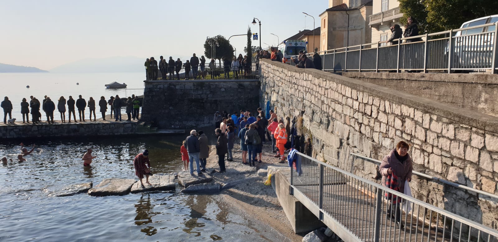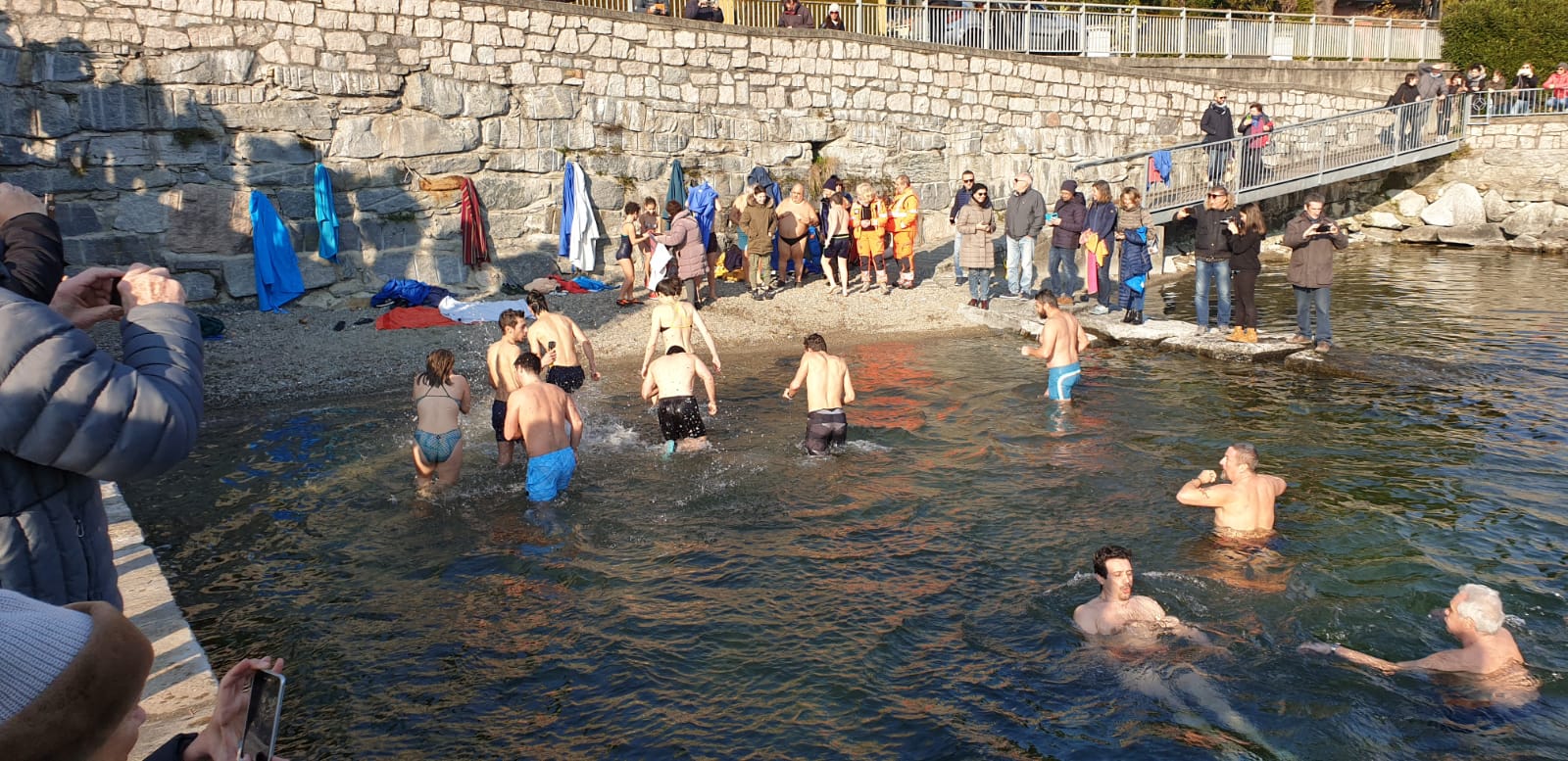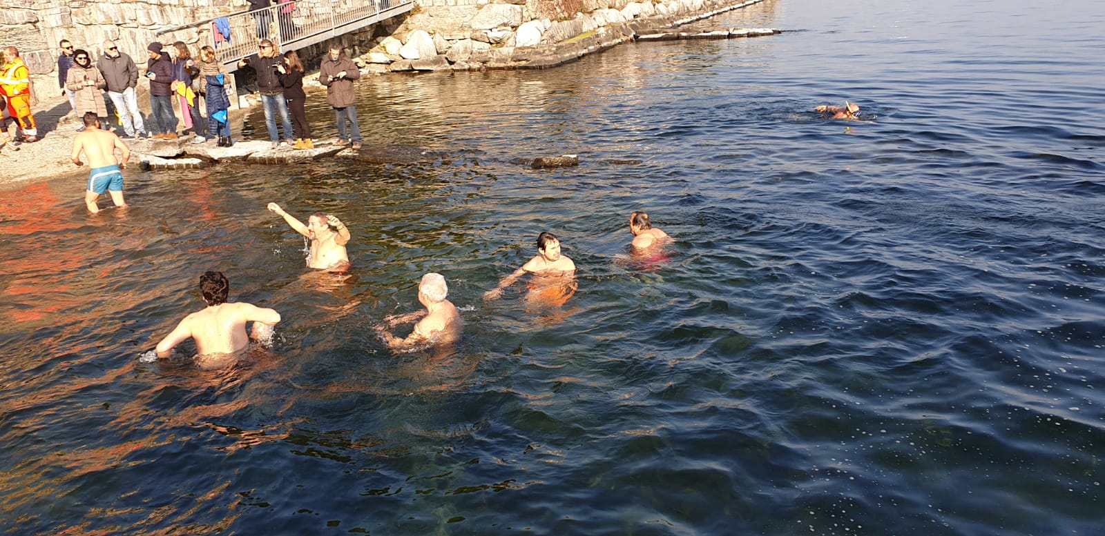 superava di poco i 7°, quello dell’aria arrivava a 11. Sono queste le condizioni atmosferiche –in una giornata di bel sole– che hanno accolto oggi a Ghiffa i 22 temerari che hanno scelto un tuffo nel Lago Maggiore per salutare l’Epifania e chiudere le feste. Il cimento numero diciassette organizzato dalla Pro Ghiffa ha avuto un numero di iscritti superiore a quello dell’anno passato, quando furono 16 a presentarsi alle 12,30 nella spiaggetta della darsena Baj, davanti alla chiesa di Santa Croce.