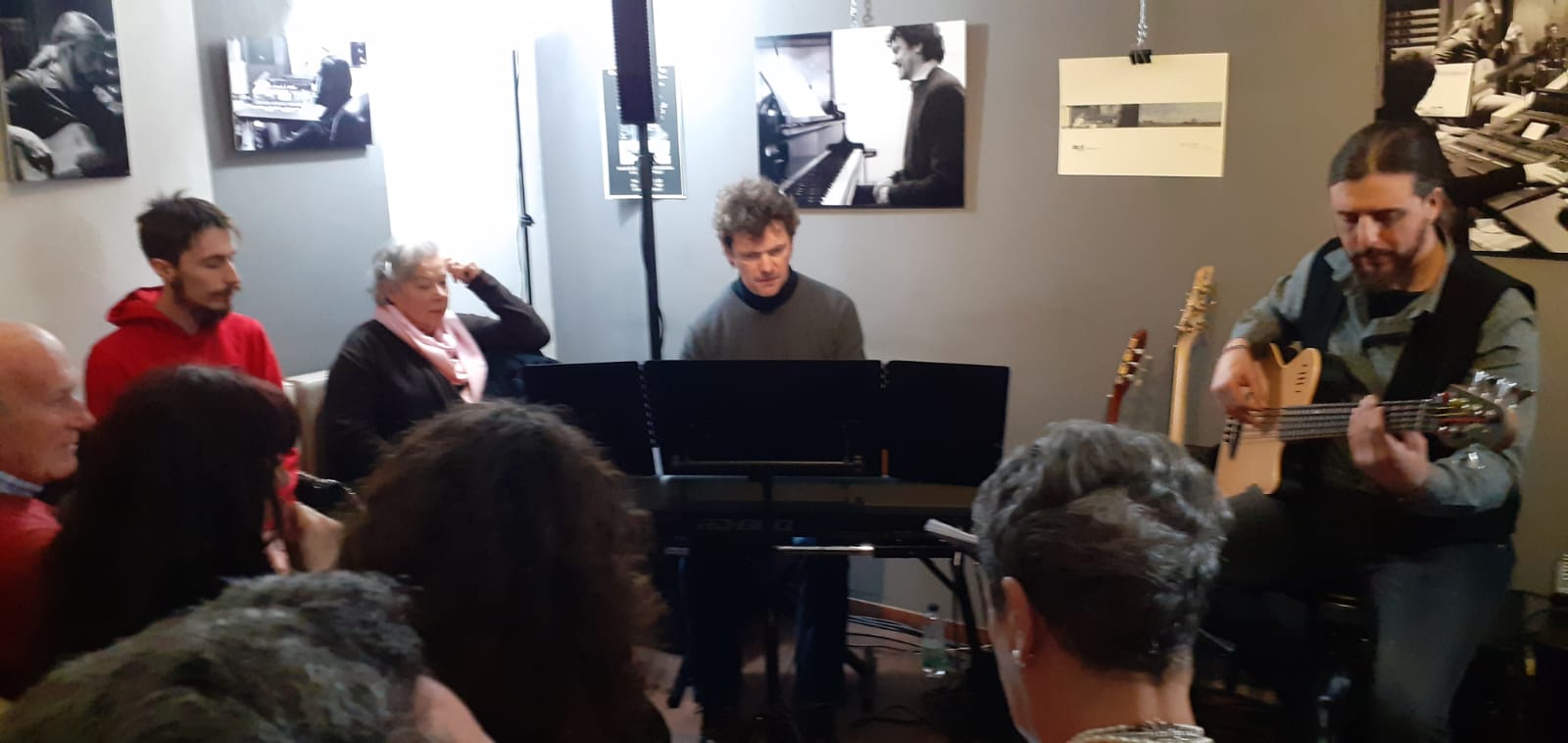 " Michele mi ha chiamato per documentare il suo primo lavoro da solista. Le mie fotografie sono al 99 per cento in bianco e nero, si tratta di una scelta personale, innanzitutto di gusto" spiega l' autore degli scatti. Il disco " Lots of Time" contiene dieci tracce che riguardano un lavoro durato circa tre anni. " Sono brani che raccontano storie, alcune musiche sono state composte pensando ad immagini " spiega Michele Guaglio. Il disco uscito a settembre del 2019 è nella classifica iTunes del Jazz in Germania. Una bella soddisfazione per l'artista ossolano , musicista di grande talento e di raffinata preparazione accademica con gli studi compiuti al Conservatorio, fondatore dell'Associazione Make Music (insieme a Marco Cassone e Marco Laurini ) e protagonista di esibizioni al fianco di mostri sacri come James Brown. La mostra rimarrà aperta al pubblico fino al 22 febbraio durante gli orari di apertura del Caffè Rosmini.
