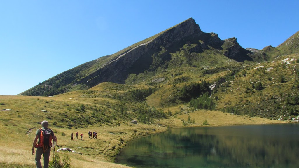 Ci sovrasta di duecento metri il Pizzo del Lago Gelato, ma il tempo stringe e non tutti hanno sufficienti riserve di energia. Prima in discesa e poi quasi “pianeggiando” puntiamo decisamente ad occidente e, passando per l’Alpe Fiesco Fuori, 2066, raggiungiamo il Lago di Matogno, 2087, in meno di due ore. In riva a questo splendido specchio d’acqua pranziamo insieme ai due amici che sono saliti passando per l’Alpe Nocca e l’Alpe di Matogno. Scendiamo all’Alpe Lago ed al Bivacco Adriano Sironi, 2067, e, di qui, all’Alpe Ratagina, 1921, dove alcuni acquistano formaggio dai pastori alemanni. Scendiamo ancora all’Alpe Nocca, 1611, ed a raggiungere la strada, in prossimità del Ponte Faugiol, dove hanno parcheggiato gli amici saliti direttamente a Matogno. Si procede al recupero delle altre auto ed alla lunga e prudente discesa verso Altoggio, auspicando che il futuro riservi, almeno ai nostri figli, meno strade, più sentieri ben segnati, più rifugi aperti e più acqua nei torrenti. E avvicinando solo le montagne che sono veramente “lontane”, come quelle di oggi.