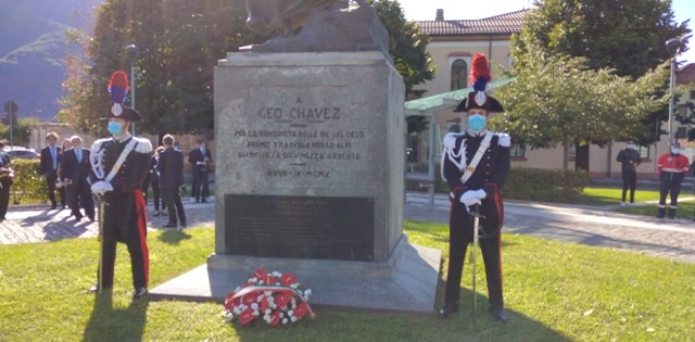 in Piazza Chavez, alla presenza delle autorità civili e militari, la cerimonia per ricordare i 110 anni dalla prima trasvolata delle Alpi, compiuta da Geo Chavez, il pilota peruviano che per primo riuscì, il 23 settembre 1910, partecipando a una manifestazione aerea sul percorso Briga- Sempione- Milano, a trasvolare la catena alpina a bordo di un monoplano Blériot. Ospite della cerimonia, il Console Generale del Perù in Torino, Cesar Augusto Jordàn Palomino accompagnato anche da una delegazione di infermiere peruviane. Massimo Gianoglio ha introdotto la cerimonia con un breve cenno storico dell'impresa.