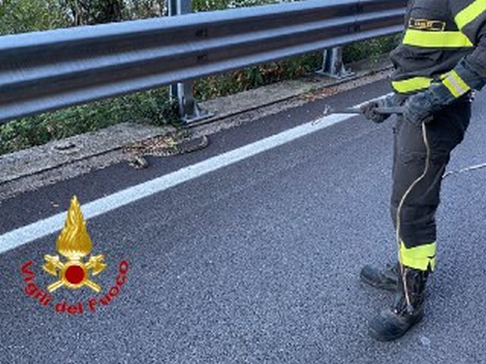 di passaggio a notarlo sul ciglio della statale 394, la litoranea che costeggia la sponda lombarda del Verbano. E hanno chiamato il numero di emergenza. Sono stati i vigili del fuoco del distaccamento di Luino, ieri sera attorno alle 18,30, a intervenire a Maccagno con Pino e Veddasca, per il recupero di un serpente. Il rettile, un pitone, a bordo carreggiata è stato prelevato e consegnato alle autorità competenti.