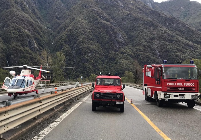 del comando del VCO sono intervenuti in soccorso della popolazione in diverse zone Provincia, devastata da frane ed esondazioni, a causa dell’ondata di maltempo che ha interessato, su più larga scala, gran parte del Piemonte. Maggiormente colpiti la bassa zona dell’Ossola, il Cusio e parte del Verbano, con viabilità interrotta in diverse zone a causa di caduta di alberi, nonché intere zone rimaste isolate. Per far fronte all’emergenza su scala locale, sono state messe in campo le forze del Comando del VCO, anche con l’utilizzo di imbarcazioni, gommoni da rafting, fuori strada, automezzi a trazione integrale. Inoltre, per rafforzare il dispositivo di Soccorso nella situazione emergenziale, è stata mobilitata la Colonna Mobile Regionale, che ha consentito l’arrivo sul posto di squadre e mezzi di Soccorso dal Comando di Bologna. Si segnalano, tra gli altri, numerosi interventi degli elicotteri dei Vigili del Fuoco: tramite l’ausilio del Drago 82, proveniente da Malpensa, e del Drago 55 proveniente da Torino, nel Comune di Ornavasso in frazione Migiandone sono state evacuate 17 persone, grazie a specialisti nel settore Speleo-Alpino-Fluviale (SAF), che hanno recuperato le persone nelle zone isolate mediante l’utilizzo del verricello. Inoltre una persona che aveva necessità di raggiungere l’ospedale per la dialisi, in località Cuzzago, è stata raggiunta tramite l'elicottero e portata in ospedale. Si segnalano anche una frana nei pressi di Bognanco, la parte alta del Paese di Cesara evacuato, il paese di Cicogna isolato per frana, ancora una frana nel paese di Massiola. Infine due giovani ragazze si erano perse in località Montescheno ed Alpe Aurelio, ed i Vigili del Fuoco sono riusciti fortunatamente a localizzarle tramite i cellulari ed a recuperarle.