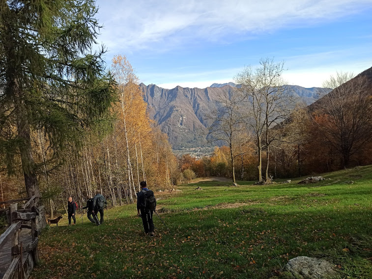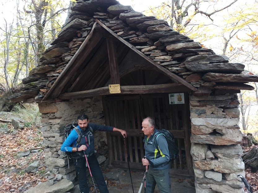 Non siamo ancora zona rossa e ci godiamo, in assetto anti-covid, l’ultima uscita fuori comune. Un maestro walser e un lavoratore quasi giovane mi accompagnano nel regno walser della bassa Ossola, Ornavasso, dove due amici ci condurranno in un giro, per noi nuovo, fra gli alpeggi della valle del torrente San Carlo. Parcheggiamo in corrispondenza di quello che le nostre guide chiamano “il terzo ponte”, a quota 240.