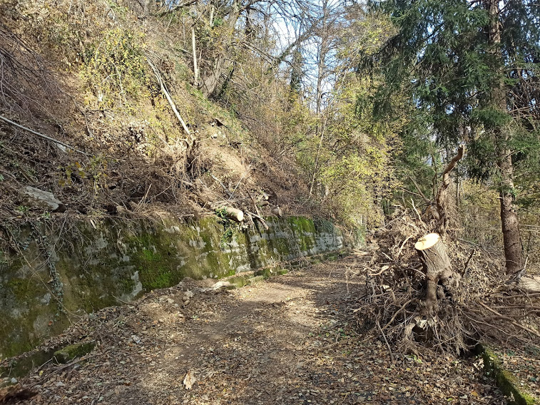 Perché ex? Oggi c’è acqua dopo le disastrose piogge di inizio ottobre, ma qui solitamente viene fagocitata dalle centraline idroelettriche e il famoso “deflusso minimo vitale” è solo un insieme di tre parole. Percorriamo la strada, passando dall’Alpe Sarledi e dal Boden, fino a Ornavasso, osservando attoniti la devastazione dei boschi provocata dalla tempesta notturna di inizio ottobre. Commentiamo con tristezza quelle che sono le risposte che la natura sta dando all’homo sapiens. Soltanto un ottimo pranzo in quel di Migiandone ci risolleva in parte il morale.