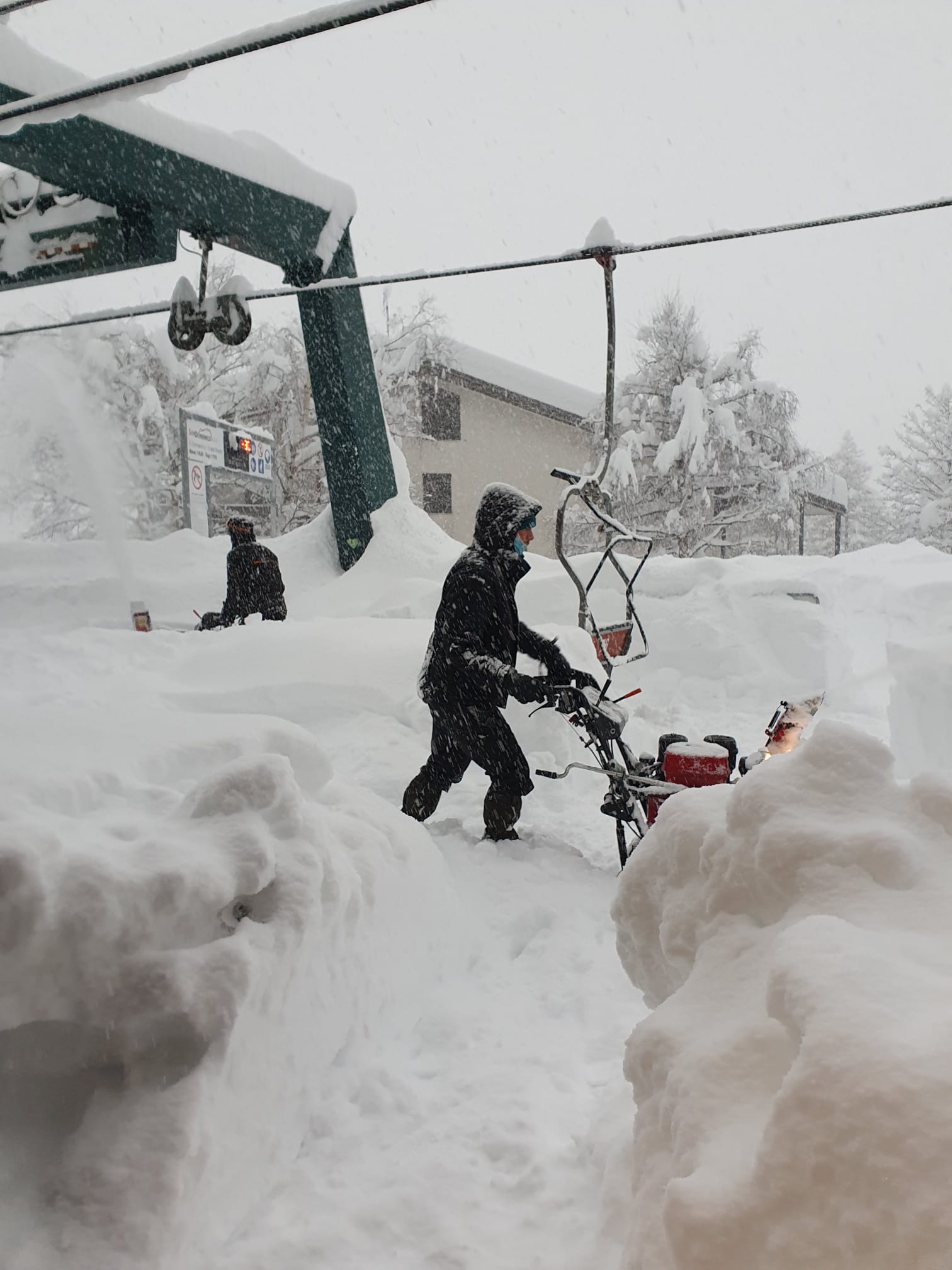 SAN DOMENICO- 07-12-2020-- La nevicata che in questi giorni incombe sulle Alpi ha portato abbondanti centimetri di neve nelle stazioni sciistiche del Vco. Ecco il video della strada per arrivare a San Domenico e le foto, dove si vedono i gestori degli impianti impegnati a liberare l'accesso alla seggiovia bloccato dalla neve. Una precauzione per mantenere attive le strutture comunque chiuse per le norme anticovid sino a dopo il 6 gennaio. In paese sono caduti oltre due metri: "Ancora non si è riusciti ad arrivare a Ciamporino- spiega dagli impianti Simona Malagoni- poichè nonostante ieri sera avessimo pulito tutte le stazioni, questa mattina non si riesce a far girare l'impianto per la troppa neve, stiamo salendo a piedi sino a casa Rossa. Una nevicata veramente tosta, adesso ha anche ripreso a nevicare veramente forte".