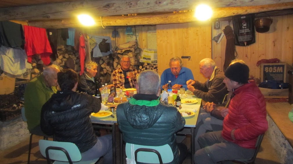 Qui entra in azione per prima la squadra degli spalatori, perché davanti alla porta ce ne sono circa due metri. Intervengono poi i cuochi ed infine gli addetti a riassetto e pulizia. Il rifugio va lasciato in ordine, pulito ed in sicurezza. Sembrerebbe ovvio, ma purtroppo sono concetti non ancora del tutto chiari a molti frequentatori della montagna. E’ altrettanto ovvio lasciare un contributo per le spese di manutenzione e per gli eventuali utilizzi di legna, energia elettrica o altro.