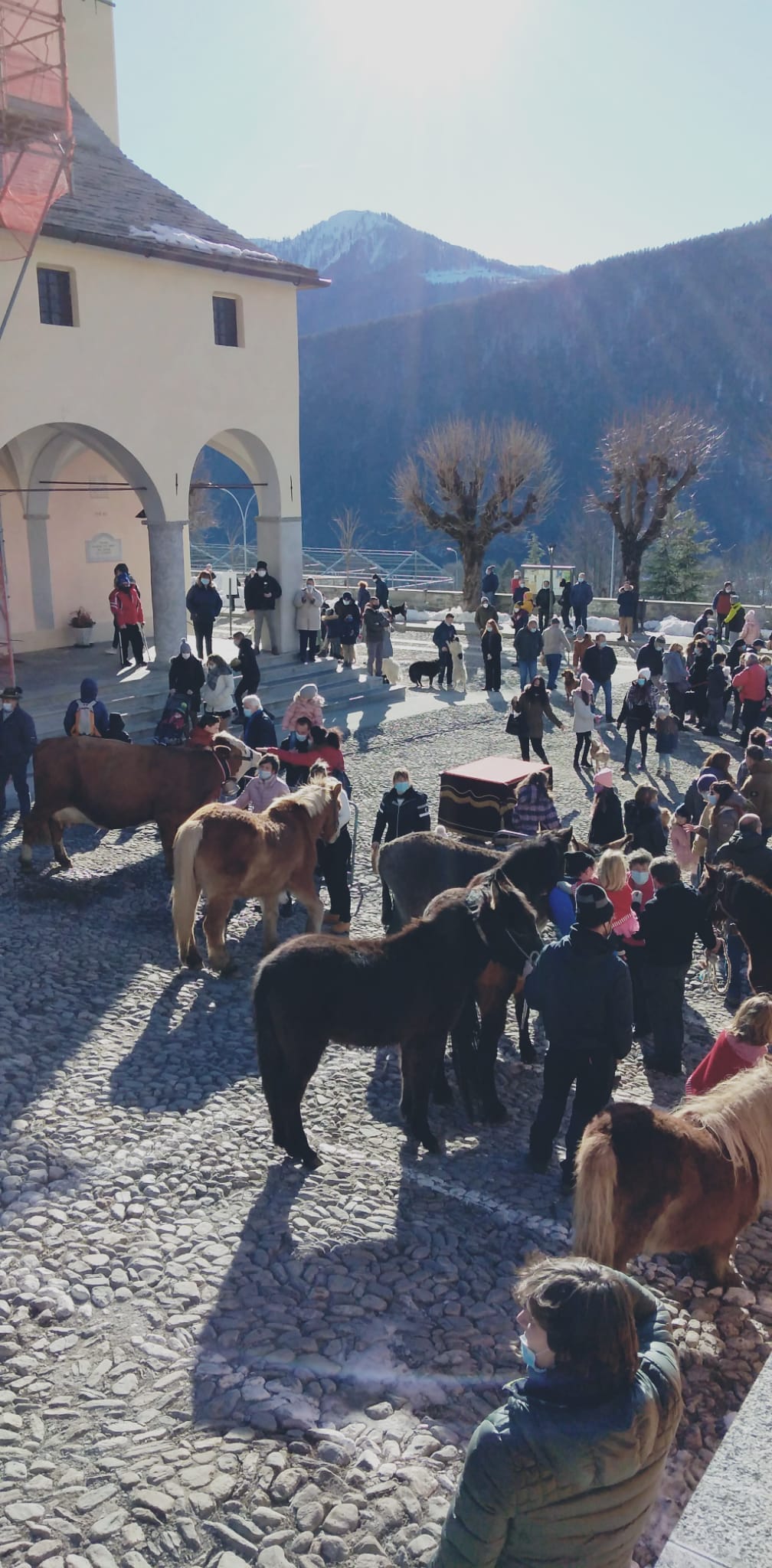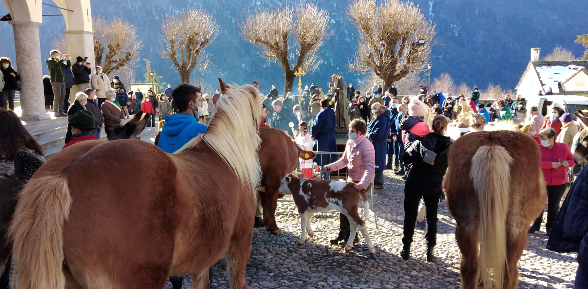 TOCENO- 17-01-2021--Anche in tempi pandemici Toceno festeggia il Santo Patrono, Sant'Antonio, protettore degli animali. Questa mattina, pur dovendo rinunciare alla tradizionale processione per le vie del paese, la comunità si é ritrovata in chiesa per la messa solenne e nell'antistante piazza per la benedizione degli animali.