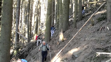 E' vero che gli alberi possono esser tagliati, ma qualche segno in più sui tronchi non avrebbe dato fastidio. Conoscendo già la zona ed essendo guidati da uno scout di origini apache, raggiungiamo ugualmente l'alpe Foppiana, quota 1495, dove ha luogo la colazione “pasquale” (circa un’ora e mezza dalla partenza; la colazione dura un po’ meno). Si riparte entrando in un bosco di abeti dove il bel sentiero è quasi completamente cancellato da tanta neve e tanti tronchi abbattuti dal peso dell'inverno. Siamo costretti ad un percorso molto scomodo e tortuoso. La neve è gelata ed il ripido tratto finale nel bosco richiede molta attenzione. Scolliniamo sulla dorsale a quota 1723, dove incontriamo il Muro dei Polacchi, edificato per scopi non chiari dagli internati dopo la seconda guerra mondiale, lungo più di un chilometro, fino alla Cima di Sassello (1891).