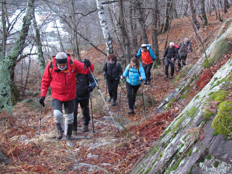 Dopo il secondo lungo periodo di sospensione delle nostre gite settimanali, il colore giallo ci consente di rivederci e di percorrere, in tutta prudenza e ben distanziati, i sentieri che sovrastano Altoggio. La frazione alta di Montecrestese viene raggiunta da otto Trotapian con quattro auto.