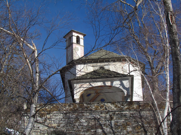 Per ripassare al meglio la strada di ritorno, il mio equipaggio torna a Domo a recuperare un paio di scarponi, dimenticati per l'emozione del rientro nei ranghi. La giornata è bella, il freddo è altra cosa. Attraversiamo Altoggio, passando dal grande lavatoio, e, a sinistra della chiesa di San Giovanni Battista, 750, imbocchiamo il sentiero che inizia a salire. Guido il gruppo con il mio passo da “vaca vègia”, che riflette oggi due mesi di inattività, conditi da un contatto molto biblico con il virus maledetto.