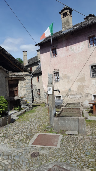 Dovremmo prendere quella che scende a sinistra a Pregliasca in prossimità della strada asfaltata. Noi, curiosi di nuovi percorsi, ci teniamo a destra lungo la pista che finisce circa cento metri sopra le case di Monteossolano. Troviamo in qualche modo il sentiero che scende ad attraversare il rio del Croppo e ci porta in centro, quota 784 (un’ora). Un rapido saluto a cari amici e si imbocca, per il ritorno, la strada comunale asfaltata che, in circa due chilometri e dopo otto tornanti, conduce alla frazione di Barro. Appena oltre le case, sulla destra, si raggiunge l'Oratorio di Sant' Antonio. Qui adottiamo una piacevole variante, che non modifica il tempo di