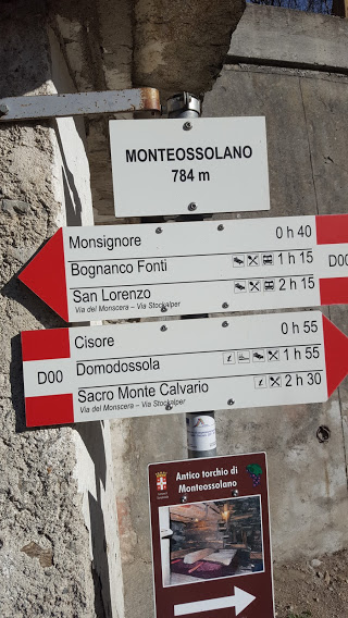 Certo la meteorologia è materia difficile, non solo in Italia. In orario finalmente “umano” parcheggiamo a Mocogna, 330, e, dopo la chiesetta di San Rocco, imbocchiamo il sentiero in dolce salita per Cisore, in prossimità della fontana. Giunti alla Cappella di Felice Previdoli, lasciamo la mulattiera, che sarebbe il percorso più comodo, e prendiamo il sentiero sulla destra. Ad un tavolo in pietra, che probabilmente serviva per appoggiare il carico e rifiatare durante la salita, teniamo la sinistra. Arriviamo ad un gruppo di case parzialmente diroccate. Invece di andare alla chiesa di Sant'Andrea lungo la trattorabile sulla destra, proseguiamo diritti costeggiando un'azienda agricola, dei prati ben tenuti con filari di vite e dei bei terrazzamenti. Saliamo fino al bivio successivo: a destra c'è la strada asfaltata che sale da Mocogna; noi andiamo a sinistra e arriviamo rapidamente a Cisore, 496.