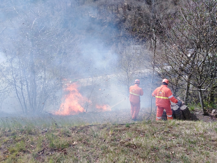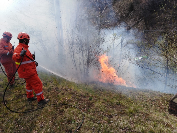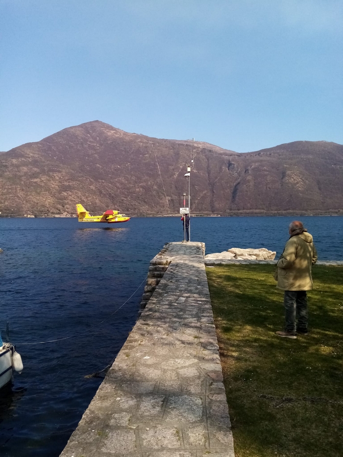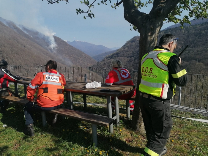 VALLE CANNOBINA - 09-04-2021 -- I focolai sono sotto controllo, ma l’emergenza non può dirsi superata. Le fiamme che da tre giorni avvolgono i boschi della bassa Valle Cannobina hanno interessato un’area di circa un centinaio di ettari arrivando sino al monte Giove, la vetta che domina sull’abitato di Cannobio. Per tutta la giornata di ieri intenso è stato il lavoro di vigili del fuoco e volontari Aib, presenti con circa un centinaio di uomini, a supporto dei quali sono giunti tre Canadair e due elicotteri antincendio. I primi hanno fatto la spola tra il lago e i monti, i secondi hanno scaricato in continuazione l’acqua prelevata dalla vasca d’accumulo allestita a Cavaglio. Ciò ha permesso di smorzare i diversi focolai che si sono propagati in più direzioni grazie soprattutto al forte vento che ancora ieri spirava sull’alto Verbano.