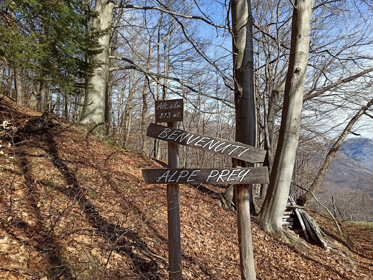A quota 550 si incontra una cappella. Il sentiero/mulattiera è sempre evidente. Attraversiamo due vallette e incrociamo il sentiero che sale da Motto. Saliamo ancora ed ecco il sentiero che proviene da Andosso. A sinistra, quasi in piano, arriviamo a Vallesone, 665. Aldilà della strada altro sentiero. Ci teniamo sempre a destra lungo una scorciatoia piuttosto ripida che ci risparmia il tratto di asfalto e ci riporta direttamente sulla pista trattorabile che s’imboccherebbe dopo il tornante della strada provinciale per il Lusentino. Seguiamo la pista, lasciando alla nostra sinistra il bivio per Domobianca, e, dopo aver attraversato un ruscello su terreno estremamente scivoloso, arriviamo alle baite dell’Alpe Prei.