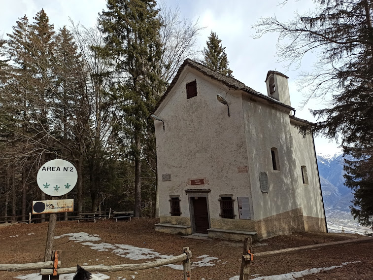 Un cartello di benvenuto ci dice che siamo a quota 813. Mi rendo conto con stupore che da questo stupendo punto panoramico non ero mai passato. Torniamo sui nostri passi per qualche decina di metri e, appena riattraversato il ruscello, risaliamo subito alla nostra destra su un ripido sentiero ben pulito che, in realtà, è una pista di discesa per i virtuosi delle mountain bike. Incrociamo la mulattiera più frequentata, che sale da Prata, poco prima del Lusentino e, dopo due ore scarse di cammino dal campo base, siamo a La Roccia da Romano, l’unica vera roccia. Ci gustiamo uno squisito caffè, rigorosamente “da asporto”, mentre osserviamo dall’alto, finalmente, i lavori di pavimentazione del piazzale, vanamente attesi per decenni. Passando dall’Oratorio di San Bernardo, 1174, lungo la strada arriviamo ad incrociare la pista da sci prima dell’Alpe Foppiano, 1249, dove osserviamo il bellissimo restyling del vecchio “Self Service”.