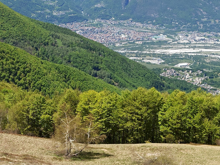 A tre anziani e a un ex alpinista, anonimo e poco fotogenico, fa compagnia una forte signora. La giornata è splendida e un fresco venticello da nord crea la temperatura giusta per superare con fatica ridotta i ripidi pendii del Bosco dell'Erta.