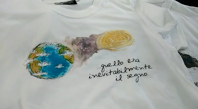 "Si tratta di magliette con acquarelli con scritta relativa alle Fantastorie, capi pezzi unici che ho dipinto insieme a Better Now questo brand di abbigliamento di Milano" spiega Vecchietti.