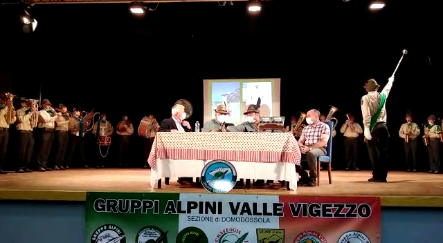 VIGEZZO- 01-08-2021-- I Gruppi Alpini della Valle Vigezzo hanno presentato ieri sera presso il teatro di Santa Maria Maggiore il libro di Giacomo Bonzani e Danilo Acchini "Alpini di Vigezzo. Tanti gruppi una sola penna". Si tratta del primo libro che racconta la storia di tutti i gruppi vigezzini ( alcuni singoli gruppi si erano giĆ dotati di una bibliografia ma non vi era ancora un lavoro completo per tutta la valle), supportato da una sezione iconografica di grande importanza storica, dalle foto della Grande Guerra scattate da chi era al fronte sino a dare un volto ai Caduti ricordati nei monumenti dei vari Comuni.