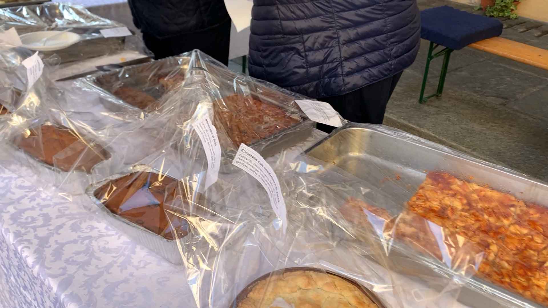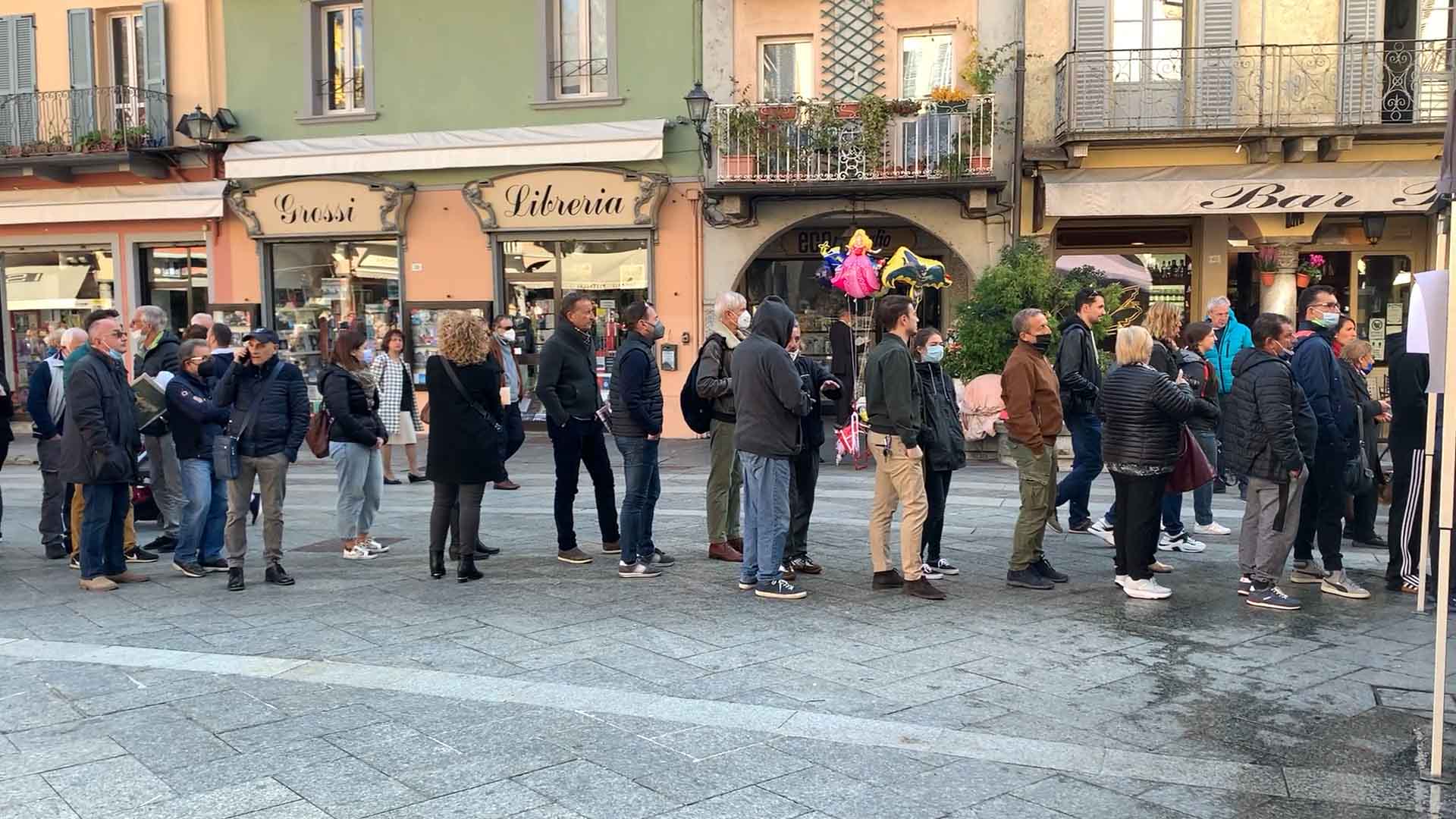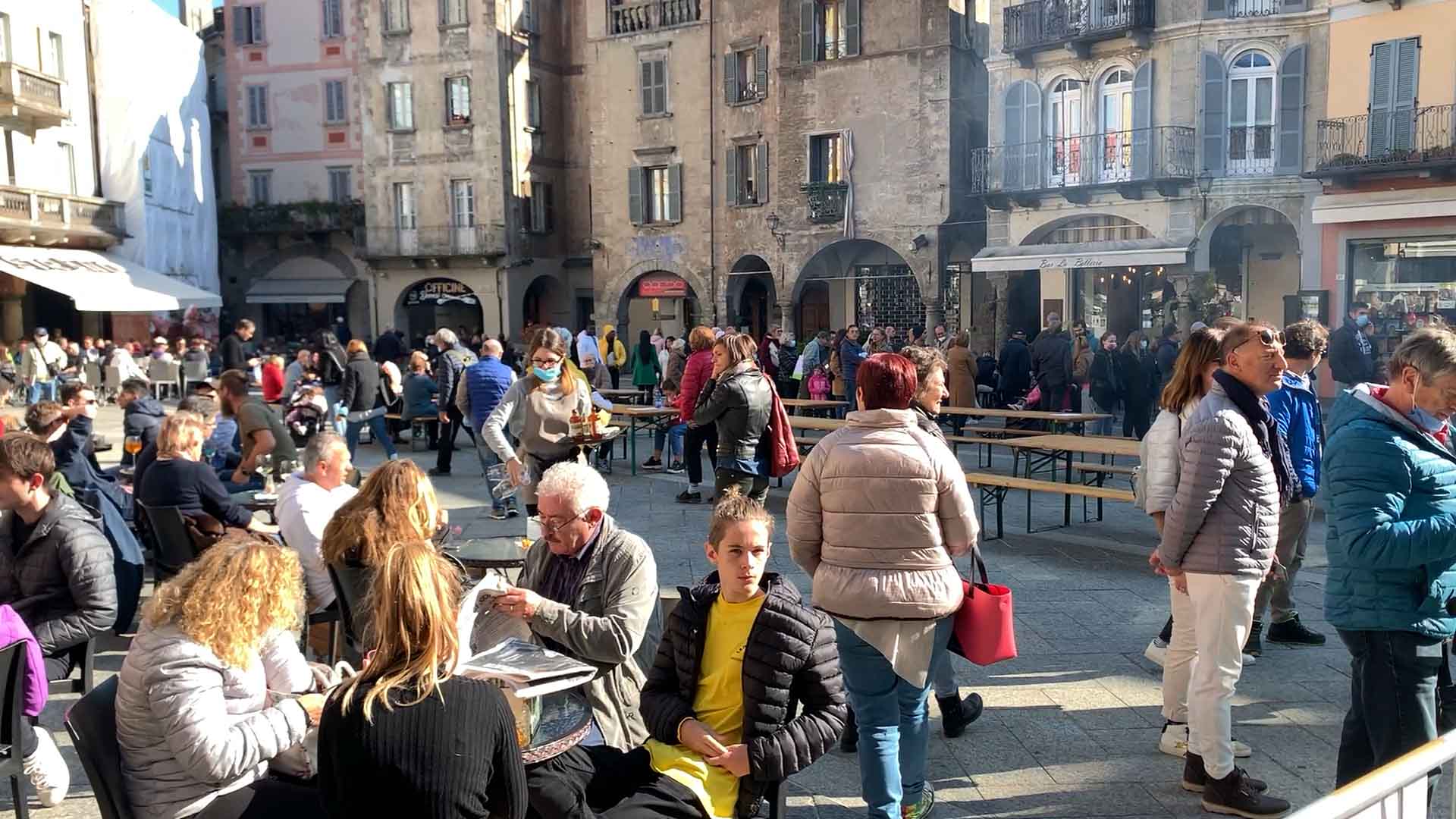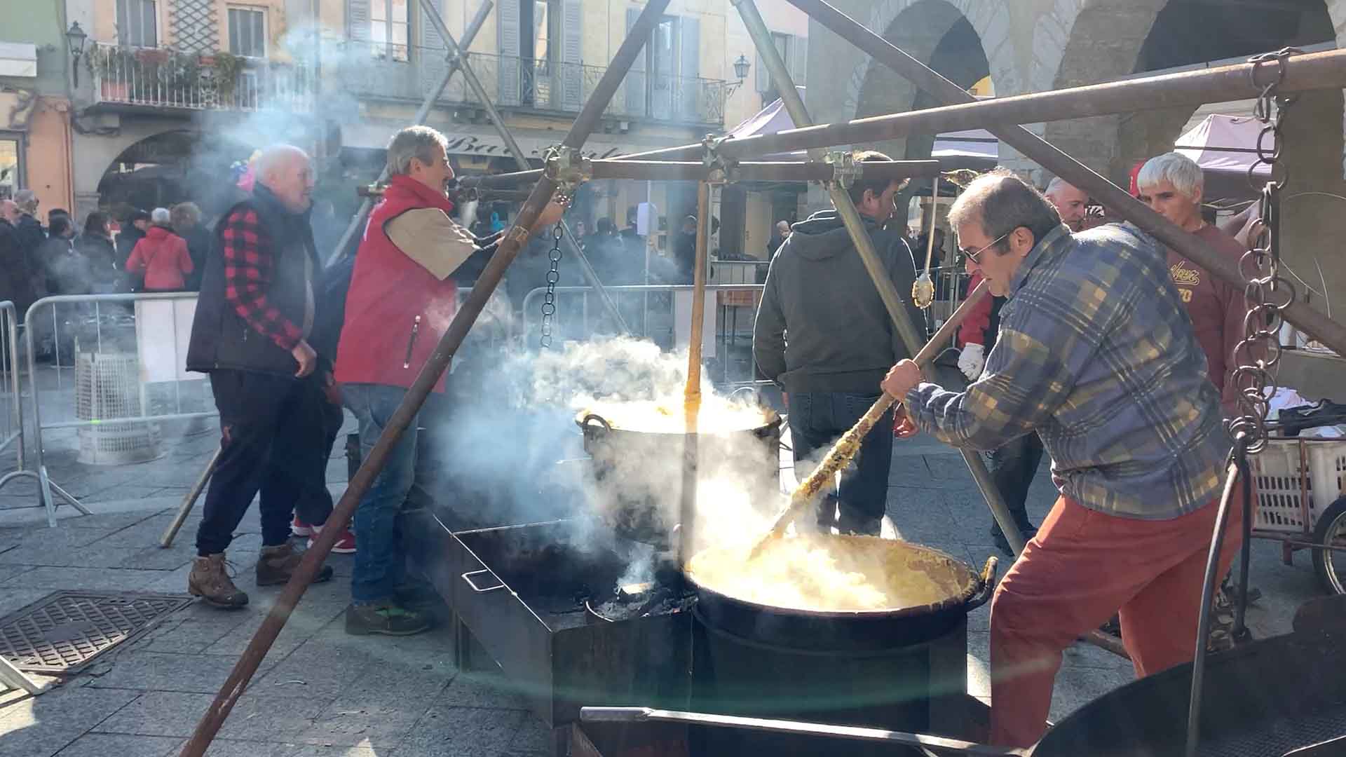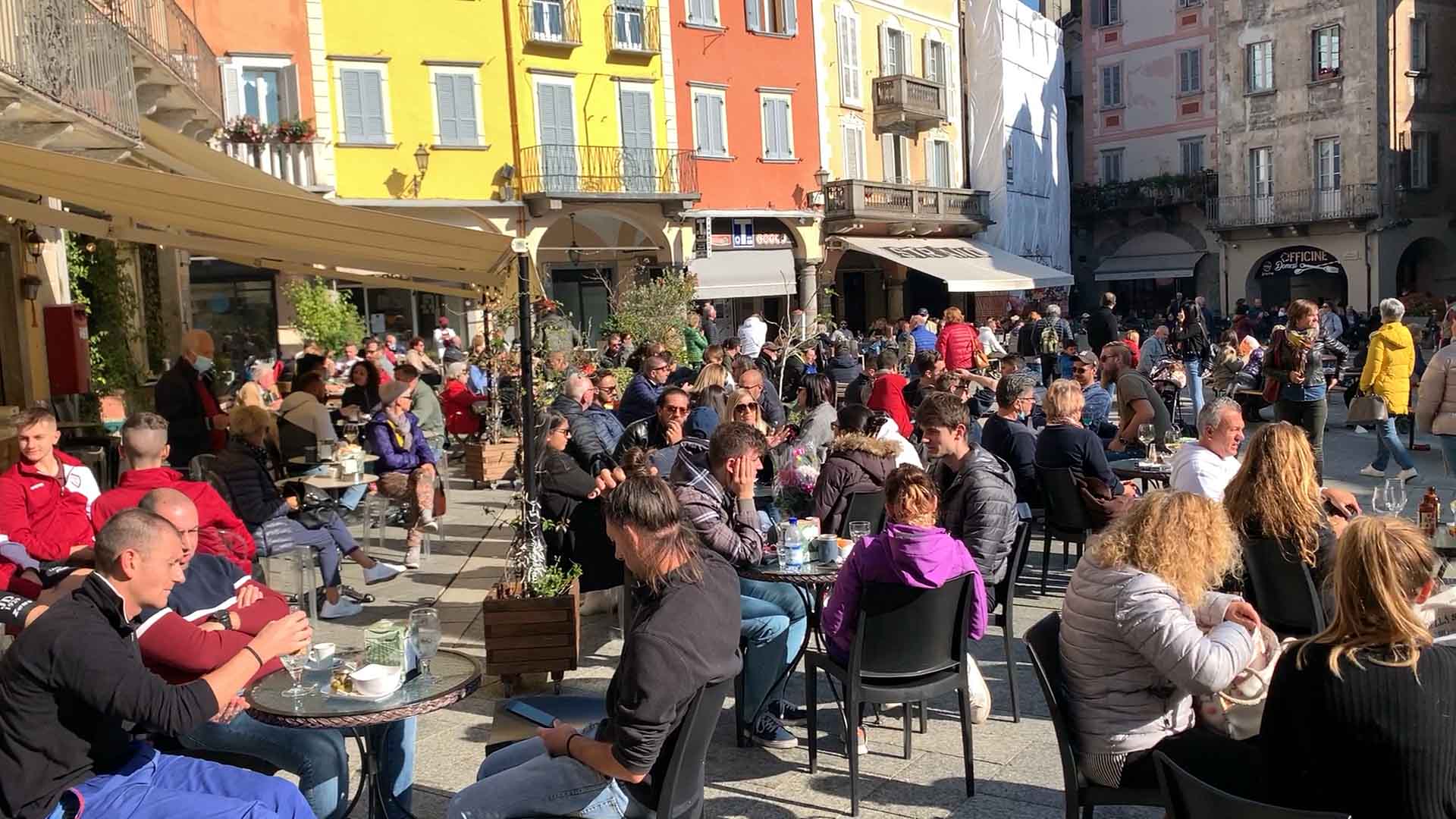 DOMODOSSOLA-43-10-2021-- Tanta voglia di normalità e socialità a Domodossola come dimostra la grande affluenza alla Festa d'Autunno in programma per tutta la domenica su iniziativa dell'associazione Oscella Felix. In tantissimi in piazza Mercato per la distribuzione di polenta e spezzatino, salamini e gorgonzola. Dalle 14 si potranno degustare gli stinchett, ed alle 15 le castagne con il vin brulè.