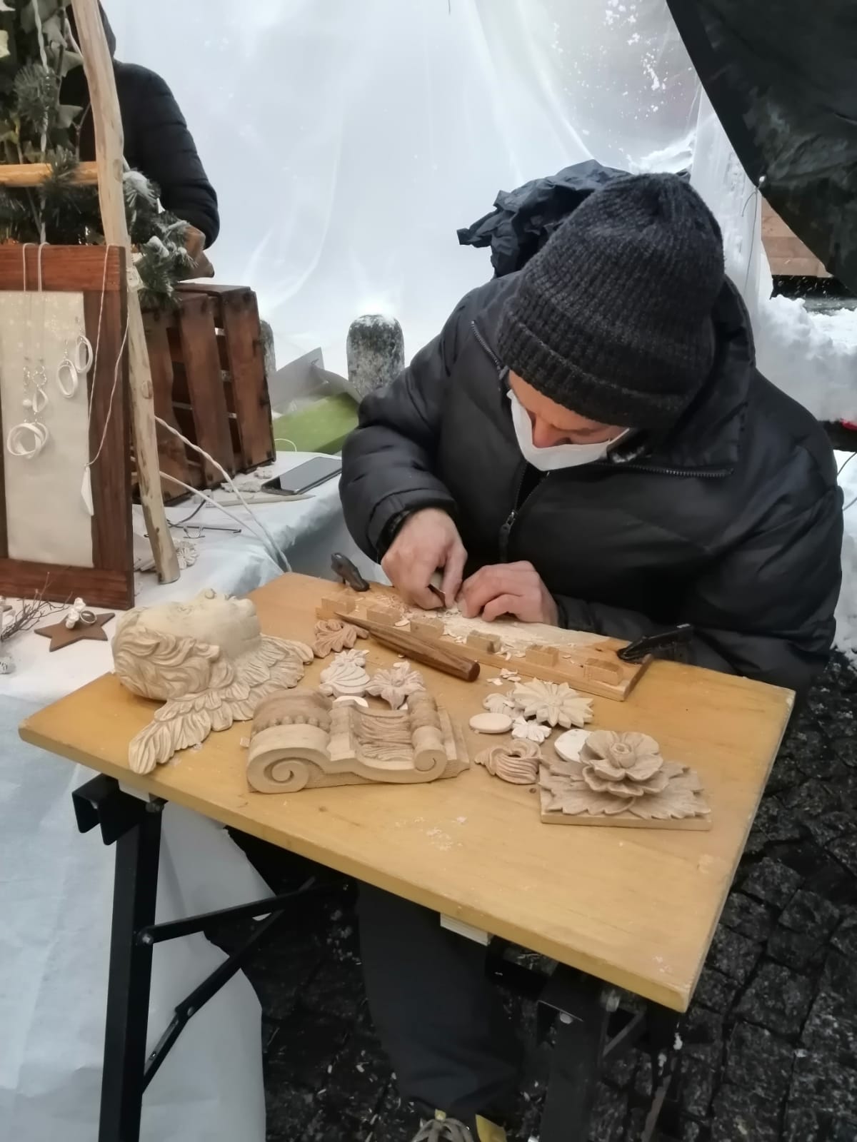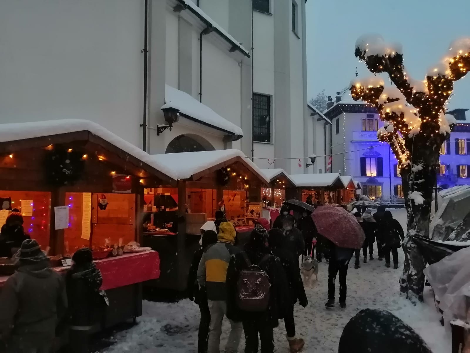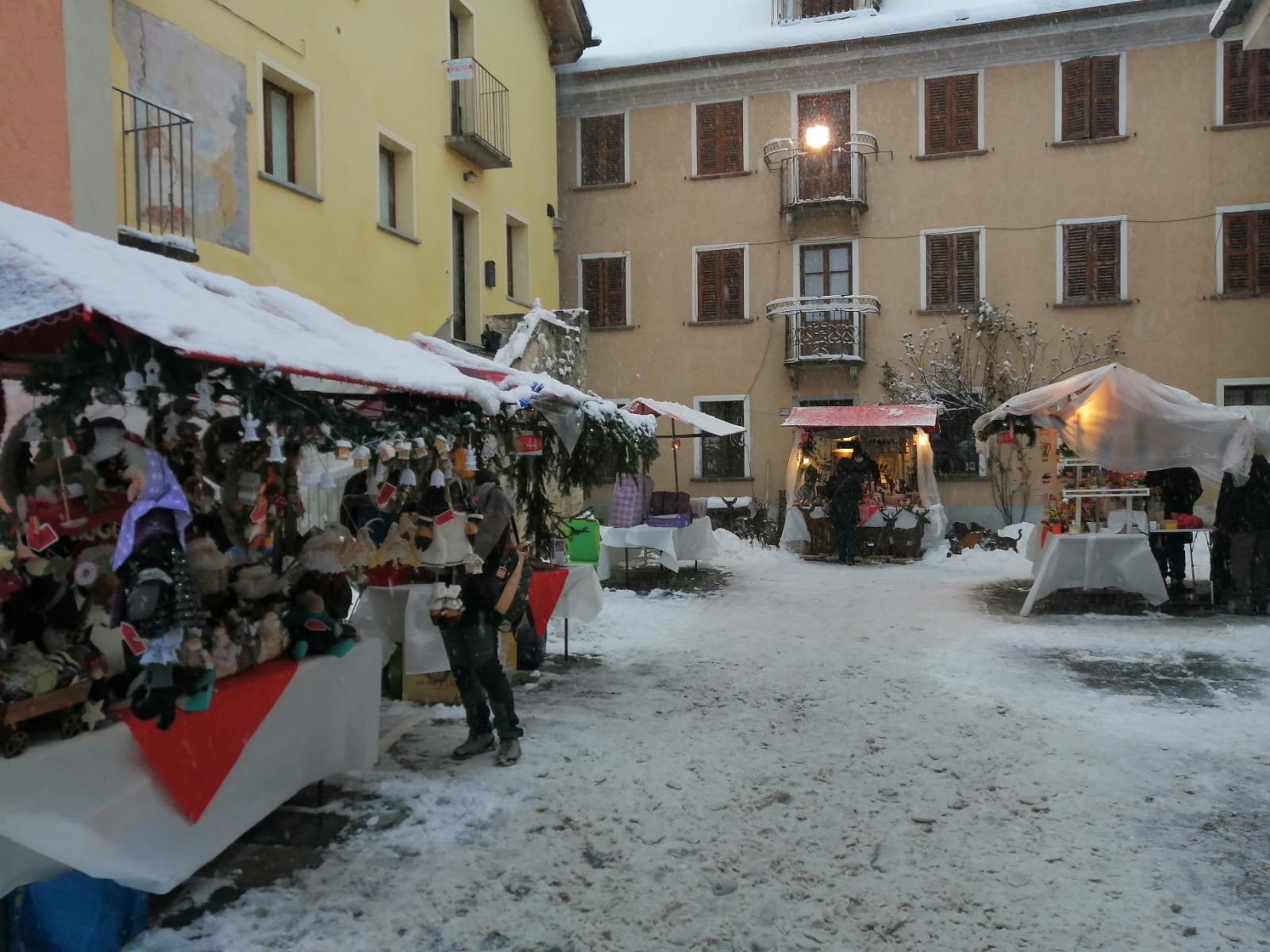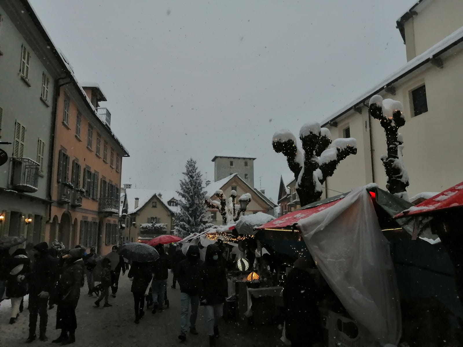 S.M.MAGGIORE- 08-12-2021-- Una fiaba natalizia i Mercatini di Santa Maria Maggiore che oggi si sono svolti sotto la nevicata. Un'atmosfera magica che ha coinvolto i numerosi turisti presenti e che รจ stata immortalata negli scatti di Niko Berini.