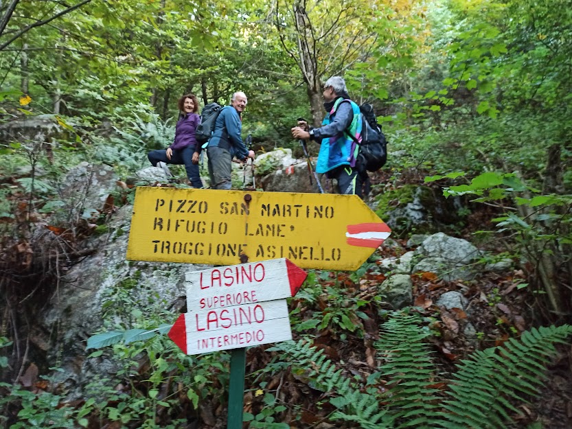 Ci muoviamo di venerdì perché si tratta dell’unica giornata decente di una settimana perturbata. L’ombrello nello zaino mi garantisce che la pioggia prevista di pomeriggio verrà rinviata. Cinque anziani sono sopportati anche oggi dalla forte e paziente signora che è sempre con noi. Saliamo subito attraversando la frazione ed entriamo nel bosco. Il sentiero B20a è ripido e ci scalda subito.