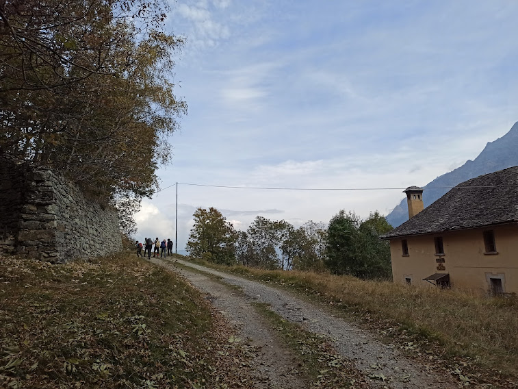 TRASQUERA- 09-01-2022-- Le scariche di adrenalina durante il transito in auto sul mitico “Ponte del Diavolo, prima di arrivare a Bugliaga, lasciano posto a una grande pace interiore quando si comincia a camminare su questi splendidi pendii, immersi nei colori dell’autunno. Peccato che anche qui nuove strade cerchino di far rinascere la montagna! Ai tempi dei nostri vecchi di strade non ce n’erano e la montagna era molto più viva di adesso.